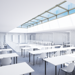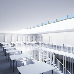 One part of the extensive project is the new building for the mathematics department on the Heinrich-Hecht-Platz site. The bidding consortium around Heinrich Karstens Bauunternehmung was awarded the contract for the execution. On their behalf, we created a simple but informative VR model of the building, primarily with the aim of bringing the atrium in the entrance area and the library to life.